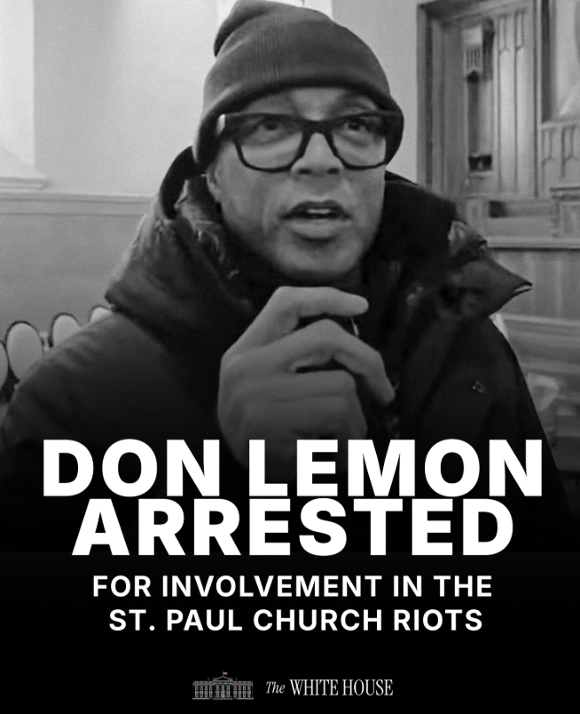 In a move that echoes the tactics of Vladimir Putin, the Trump administration has arrested former CNN correspondent and independent journalist Don Lemon. According to the Department of Homeland Security, Lemon is facing federal civil rights charges connected to an anti immigration enforcement protest that disrupted a church service in Minnesota. Lemon is accused of…