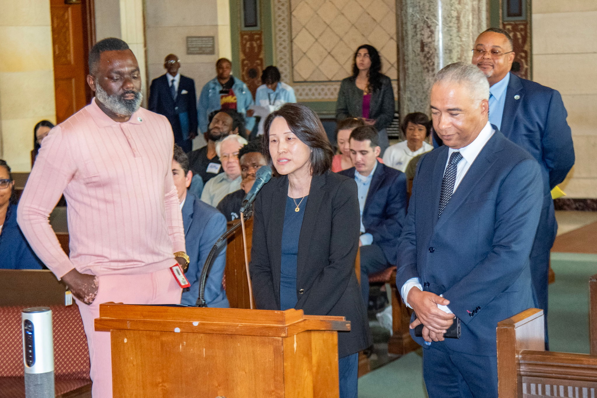 Street Services Supervisor Langston Phillips, left, was saluted by the L.A. City Council, StreetsLA Executive Officer Shirley Lau, center, and StreetsLA General Manager Keith Mozee, right, during Black History Month for his outstanding contributions to the Department of Public Works Bureau of Street Services.
