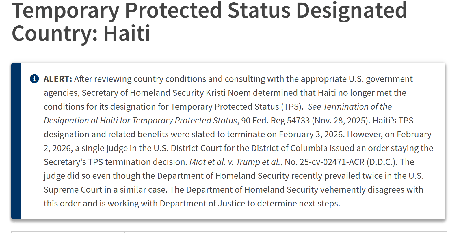 USCIS has extended Haiti TPS work permits after a federal judge blocked the program’s termination, but did not specify an end date.